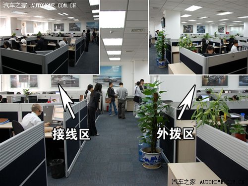 這是寶馬客服呼叫中心大廳,共分兩個區(qū)域,分別是接線區(qū)和外撥區(qū)。(如上圖所示)通過對寶馬呼叫中心的采訪我們得知,客服中心的員工在正式上崗之前有2個月的培訓(xùn)期,培訓(xùn)兩個月后才能正式上崗;所以員工一個月共接8000多個電話,所有電話均有錄音。