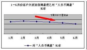 短信滿意度作為實時的客戶服務(wù)評價手段,“非常滿意”指標(biāo)體現(xiàn)出在服務(wù)過程中一線客戶代表與客戶溝通的愉悅度、忠誠度。隨著“非常滿意”及“對人員不滿意”滿意度指標(biāo)的改善,一定程度上說明一線客戶代表的服務(wù)狀態(tài)得到了有效的改善。