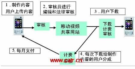 由于UGC(用戶產(chǎn)生內(nèi)容)類業(yè)務的產(chǎn)生,內(nèi)容類業(yè)務出現(xiàn)了創(chuàng)新的商業(yè)模式,根據(jù)內(nèi)容下載情況與內(nèi)容提供者之間進行分成。和黃3公司就推出了這樣的盈利模式,我國移動視頻共享網(wǎng)站也在向這個方向探索。
