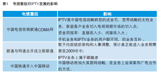 (1)電信重組對(duì)IPTV的影響(如表1)