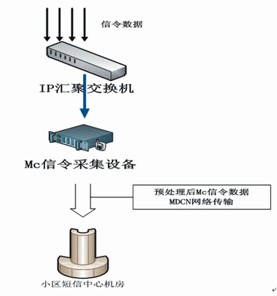 在軟交換模式下,在不影響信令傳輸?shù)那疤嵯,小區(qū)短信系統(tǒng)通過(guò)對(duì)Mc接口(MGW與MSCServer之間)進(jìn)行IP數(shù)據(jù)采集,替代采集A接口七號(hào)信令數(shù)據(jù),對(duì)采集到的Mc接口數(shù)據(jù)進(jìn)行分析、合成,獲取到小區(qū)短信平臺(tái)所需的重要、關(guān)鍵數(shù)據(jù)。