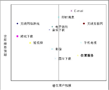 在以往對大眾用戶的調(diào)研中,位置服務(wù)通常成為用戶最感興趣的業(yè)務(wù)前三名,但是擁有龐大的潛在用戶群體只是“殺手級”應(yīng)用的一個前提條件;而另一個條件是:使用用戶要具有較高的使用頻率,這恰恰是目前的位置服務(wù)業(yè)務(wù)所不具備的。與E-mail、即時消息等業(yè)務(wù)相比,位置服務(wù)業(yè)務(wù)的使用頻率偏低,普通大眾用戶不會每天查詢所在城市的地圖、從家里去公司的路線,位置服務(wù)業(yè)務(wù)的基礎(chǔ)功能決定了用戶較低的使用頻率。