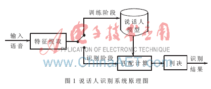 說話人識別又被稱為話者識別,是指通過對說話人語音信號的分析處理,自動確認說話人是否在所記錄的話者集合中,以及進一步確認說話人的身份。說話人識別的基本原理如圖1所示。