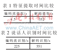 時間都遠小于解碼重建后的語音特征提取時間和識別時間,滿足實時說話人識別的需要。