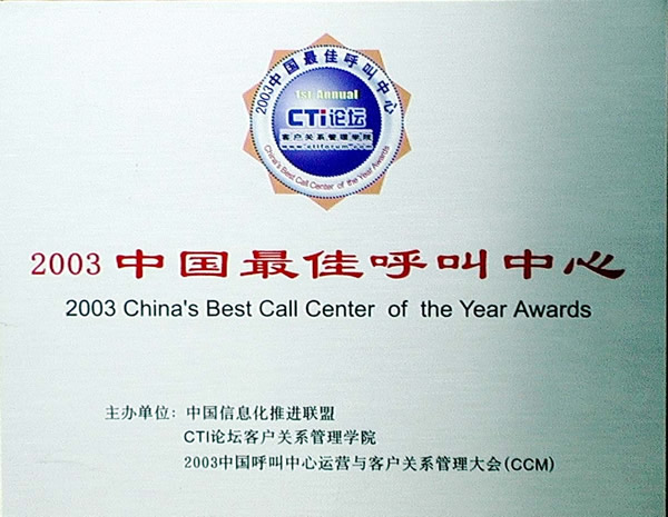 國家級稱號有“全國建設(shè)信息工作先進(jìn)單位”、“全國創(chuàng)建文明行業(yè)工作先進(jìn)單位”、“全國巾幗文明示范崗”、“2003中國最佳呼叫中心”。
