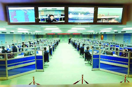 指揮長室:透過玻璃屏幕可監(jiān)視大廳