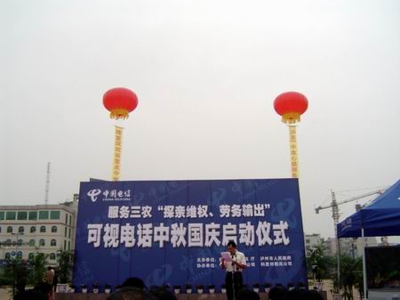 9月28日上午,由四川省司法行政系統(tǒng)、瀘州市政府和中國電信共同推出的服務(wù)三農(nóng)“探親維權(quán)、勞務(wù)輸出”可視通話免費(fèi)服務(wù)活動(dòng)在瀘州市瀘縣舉行。這一活動(dòng)為川籍在粵務(wù)工人員和四川家鄉(xiāng)親屬提供親情團(tuán)聚、維權(quán)援助、政府關(guān)懷、勞務(wù)輸出等“服務(wù)三農(nóng)”項(xiàng)目提供了實(shí)實(shí)在在的幫助。