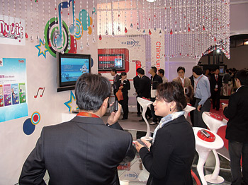 在本屆通信展上,中國聯(lián)通掌上股市、紅草莓、手機導航等新業(yè)務精彩亮相,許多觀眾對掌上股市業(yè)務表現(xiàn)出了極大的興趣。而中國移動也展示了面向2008年北京奧運會的移動票務、BlackBerry等移動商務應用,吸引了觀眾的眼球。
