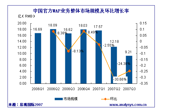 第3季中國官方WAP市場整體規(guī)模達(dá)9.21億