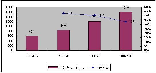 賽迪顧問預測2007年底,我國增值電信業(yè)務市場收入有望超過1600億元,增速高達33%,移動增值業(yè)務收入規(guī)模將達980億元左右,占比高達61.25%。2007年增值電信業(yè)務經(jīng)營企業(yè)的數(shù)量將會出現(xiàn)負增長,量的下降帶來質的提升,表明增值電信業(yè)市場已經(jīng)趨于良性發(fā)展。