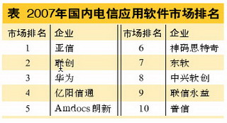 隨著電信運營商對于系統(tǒng)性能需求的逐步提高,以及硬件產(chǎn)品價格的下調(diào),電信運營商在電信應(yīng)用軟件上的投入占電信應(yīng)用系統(tǒng)總投入的比例也逐步提升。技術(shù)核心競爭力在競爭中也越發(fā)體現(xiàn)出其重要性。從2007年的市場來看,亞信、聯(lián)創(chuàng)、億陽信通與聯(lián)信永益等企業(yè)的高速增長與其出色的研發(fā)團隊有密不可分的關(guān)系。2008年,電信應(yīng)用軟件在整體投入中的重要性將進一步增強,研發(fā)能力出色的企業(yè)將有可能獲得更大的市場份額。