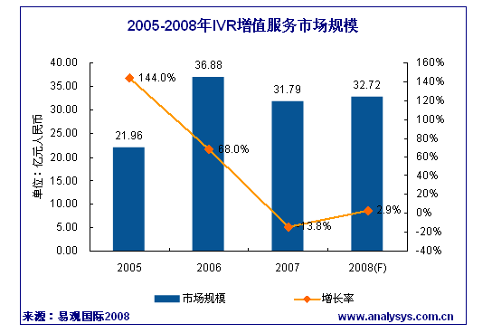 但是IVR業(yè)務(wù)2007年出現(xiàn)13.8%的負(fù)增長,主要受以下因素影響: