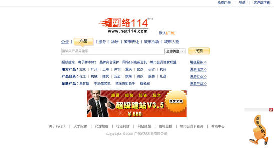 原網(wǎng)絡(luò)114 “轉(zhuǎn)讓”、“求購”、“招聘”、“應(yīng)急貼”、“商問”和“反查”等六大主打欄目不見了,取而代之的是“服務(wù)”、“場所”、“城市轉(zhuǎn)讓”、“城市活動”、“城市人物”等五欄目。據(jù)了解,第六欄目‘城市批發(fā)’由于數(shù)據(jù)整理問題,不參加公測,將被安排隨后直接上線,奧運會帶來的巨大客流,對生活資訊黃頁的需求也隨之放大,巨大的需求也意味著生活資訊類網(wǎng)站巨大的發(fā)展機遇。7月初,谷歌把還處于測試期的生活搜索入口提到了中國首頁,與視頻、圖片、地圖等并稱谷歌中國八大重點業(yè)務(wù)之一。近日,雅虎口碑網(wǎng)也高調(diào)上線。