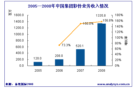 中國集團彩鈴業(yè)務2008年市場收益將達13.6億元