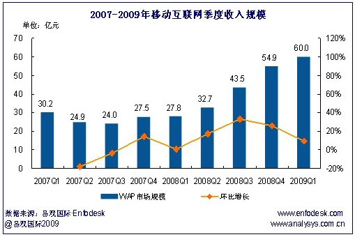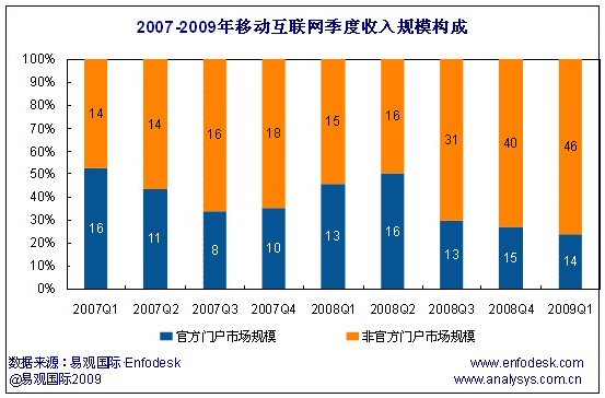 2009首季中國(guó)移動(dòng)互聯(lián)網(wǎng)收入達(dá)60億 運(yùn)營(yíng)商官方門戶有望快速增長(zhǎng)