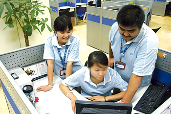 “玉不琢,不成器!彪m說目前社會的就業(yè)壓力源自于復雜的社會原因,可是在客服中心人力資源室的陳依群主管看來,有些還在于80后年輕人的自身原因!斑@些年我做招聘工作以來,看到了一些年輕人抱著希望進來以后,因為受不了壓力又退出了。在就業(yè)壓力巨大的情況下,多是獨生子女的80后一代,還沒有完全樹立起正確的就業(yè)觀和務實的工作態(tài)度。我們的原則是,凡是進入我們公司的員工和見習學生,都要經(jīng)歷嚴格的培訓,接受規(guī)范的管理,接受我們公司企業(yè)文化的熏陶。通過見習,我們也發(fā)現(xiàn)了很多真正會發(fā)光的優(yōu)秀人才!