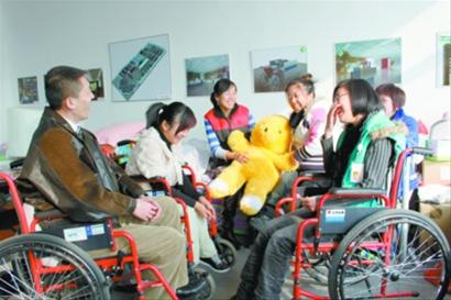 劉淼轉(zhuǎn)動(dòng)著輪椅在無(wú)障礙辦公區(qū)自如地穿行,記者隨著她參觀了就業(yè)基地。 “這份工作對(duì)于我們這些殘疾人來(lái)說(shuō),就像椅子上的陽(yáng)光;我們不但心中充滿(mǎn)陽(yáng)光,還要把我們心中的陽(yáng)光傳遞給客戶(hù),給他們以溫暖的感受。”說(shuō)這些話(huà)時(shí),劉淼一直微笑著。