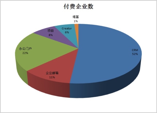 從付費企業(yè)數(shù)上看,目前最為成熟而流行的企業(yè)在線應(yīng)用模式客戶關(guān)系管理(CRM)依舊在百會付費用戶中占據(jù)半壁江山,用戶的高認知度和百會CRM優(yōu)秀的產(chǎn)品品質(zhì)也是企業(yè)選擇CRM作為入駐百會第一站的主要動因。但對于百會來說,CRM并不代表全部,還有另外一半的付費用戶來自于其他多種類型的應(yīng)用。