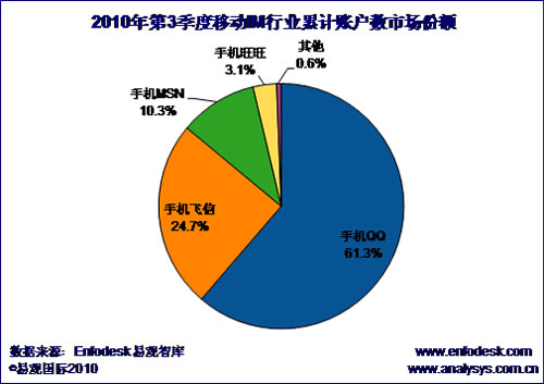 中國移動(dòng)IM市場格局形成 手機(jī)QQ市占率超60%
