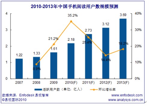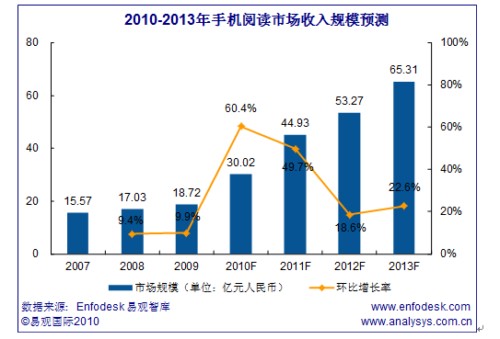 易觀國際(Analysys International)分析預計2010年手機閱讀市場規(guī)模將突破30億元。