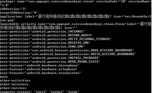 Jacky舉例,安智網的一款應用軟件名為屏幕水珠,在2010年7月份聯系原作者進行的漢化,由于效果不錯,一些廠商進行修改后,在代碼中加了收取和發(fā)送短信以及讀取和寫入書簽的權限。