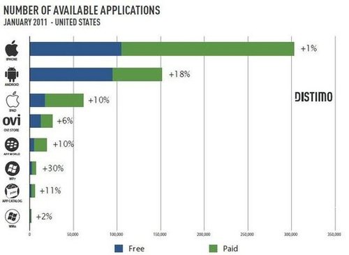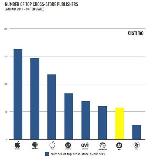 專注于App Store發(fā)展得研究者Distimo昨天公布了一份有關(guān)手機(jī)應(yīng)用程序商店的市場報(bào)告,報(bào)告顯示W(wǎng)indows Phone 7的增長速度高達(dá)30%。