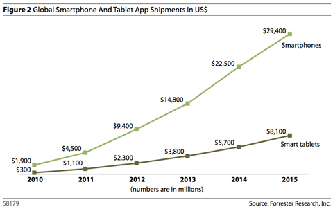 北京時間3月1日消息,據(jù)國外媒體報道,市場研究公司Forrester當?shù)貢r間周一發(fā)表報告稱,到2015年,移動應(yīng)用市場規(guī)模將達到380億美元。
