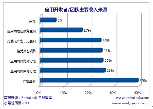 易觀國(guó)際(Analysys International)分析認(rèn)為應(yīng)用開發(fā)者難以獲取盈利分成的主要原因在于用戶對(duì)應(yīng)用本身沒有付費(fèi)下載習(xí)慣,應(yīng)用商店缺少對(duì)應(yīng)用的推廣,但應(yīng)用開發(fā)者難以盈利也和移動(dòng)應(yīng)用同質(zhì)化嚴(yán)重,難以被用戶認(rèn)可本身強(qiáng)相關(guān)。