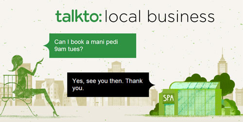 這一切是怎樣實(shí)現(xiàn)的呢?TalkTo通過(guò)短信與商家溝通。用戶可以通過(guò)web應(yīng)用在TalkTo目錄中搜索需要的服務(wù),輸入商家的詳細(xì)地址或者大概位置,TalkTo就可以確保商家看到用戶的短信。TalkTo用戶可以向商家提出問(wèn)題和意見,或直接預(yù)定服務(wù)。“這一切就像和朋友發(fā)短信一樣簡(jiǎn)單。”