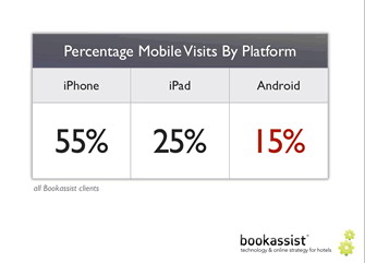 Bookassist在2009年底推出了其酒店移動網(wǎng)絡應用程序解決方案,現(xiàn)在有150多家酒店和酒店集團采用了該應用程序。在此,我們和大家分享一些關于酒店移動網(wǎng)站以及手機應用程序使用方面的一些不同結果。