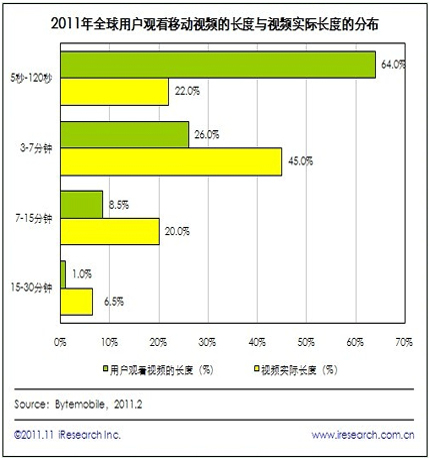 2011年全球64%移動(dòng)視頻只被觀看了2分鐘以內(nèi)