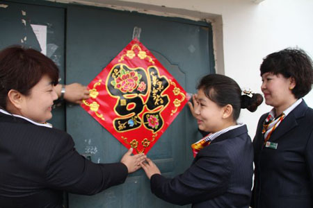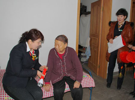 “阿姨,春節(jié)快到了,我們來看看您,前兩天已經(jīng)幫您把電充上了,這次給您帶了個手電,用著它以后到地下室可以照個亮!标犻L阿依古麗向丁阿姨說明來意,還跟丁阿姨試了試,手電是充電式的,不用換電池,丁阿姨挺高興的。臨走時,阿依古麗還在她家門上貼了個大紅的“福”字,祝福老人家新年快樂。