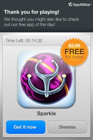怎樣有效的將應(yīng)用貨幣化呢?簡(jiǎn)單的說(shuō),我們首先需要判斷當(dāng)前用戶群的客戶終身價(jià)值,然后通過(guò)一系列方法使該價(jià)值得到持續(xù)的提升;這些方法包括“應(yīng)用內(nèi)”的普通廣告、產(chǎn)品體驗(yàn)廣告、來(lái)自相同發(fā)布商的其他應(yīng)用信息、相關(guān)增值產(chǎn)品與服務(wù)等。下圖所示的就是在應(yīng)用中推銷另一款產(chǎn)品的典型案例。