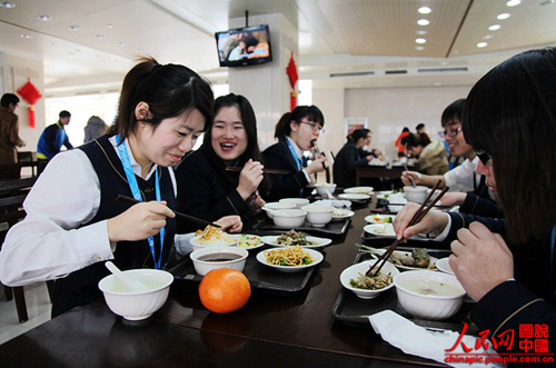 食堂的大樓很霸氣,里面的飯菜也很豐盛,價格也比外面便宜不少。每人每月有200多元的伙食補(bǔ)貼。若是吃不完卡里的錢,還可以兌換成超市卡。