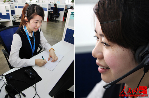 沈青青,今年24歲,湖州人,擔(dān)任浙江移動10086接線員已經(jīng)兩年了,是2011年下半年度杭州濱江中心的服務(wù)明星。她每天要接聽至少200-300個電話,每次她總能以甜美的聲音為顧客解決一個又一個的問題。