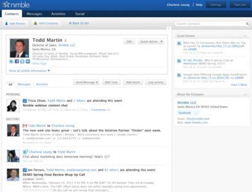 在一切皆可社會(huì)化的今天,客戶關(guān)系管理(CRM)服務(wù)的社交色彩也開始變得越來越濃。該領(lǐng)域內(nèi)的創(chuàng)業(yè)公司Nimble最近升級(jí)了它們的服務(wù),升級(jí)后的Nimble 2.0版更加強(qiáng)調(diào)社交信息的聚合管理,試圖給側(cè)重“信息輸入”的CRM服務(wù)領(lǐng)域帶來新變化。