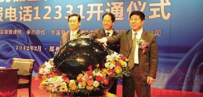 在“3·15”消費者權益日到來之際,河南省在全省范圍內受理反映藥品、醫(yī)療器械、保健食品、化妝品在研制、生產、流通、使用環(huán)節(jié)違法行為投訴舉報的重要渠道:河南省食品藥品監(jiān)督管理局(系統(tǒng))投訴舉報電話“12331”在河南聯(lián)通公司正式開通。國家食品藥品監(jiān)督管理局投訴舉報中心毛振賓主任,河南省食品藥品監(jiān)督管理局局長李廣勝、副局長章錦麗,中國聯(lián)通河南省公司總經理趙玉軍、副總經理張國賢等出席開通儀式。