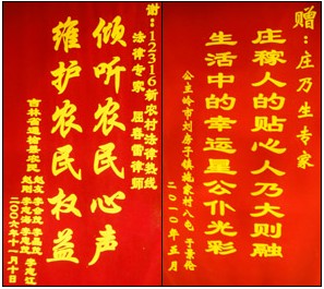專家們辛勤耕耘贏得了農(nóng)民的認可,千里迢迢送去了錦旗和感謝信,并在2010年12316專家評選活動中,冒著大雪趕去為他們的貼心人投上了自己寶貴的一票。