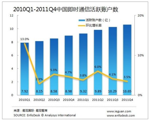中國即時通信活躍賬戶數(shù)達到10.65億