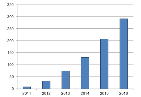 圖5:2011-2016 LTE設(shè)備出貨量預(yù)測(cè)