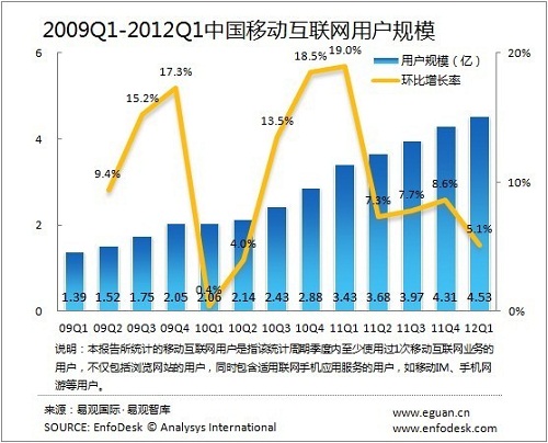 易觀:2012Q1中國移動(dòng)互聯(lián)網(wǎng)市場規(guī)模突破300億