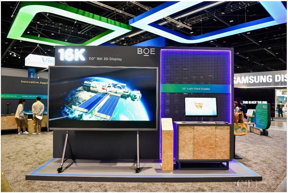 本次SID,BOE(京東方)攜三大技術(shù)品牌重磅首發(fā)的多款行業(yè)領(lǐng)先顯示技術(shù)和產(chǎn)品驚艷亮相。步入展區(qū),首先映入眼簾的是BOE(京東方)重磅首發(fā)的全球首款16K 110英寸超大尺寸裸眼3D顯示屏,并以超高清、超高分辨率、多視點、廣色域等優(yōu)勢突破了顯示行業(yè)的創(chuàng)新高度,該產(chǎn)品搭載高色域Mini LED背光技術(shù)以及BOE(京東方)自主研發(fā)的16K交織排圖算法,3D視角擴(kuò)大至60°,廣泛應(yīng)用于廣告、會議、教育等多元化場景。