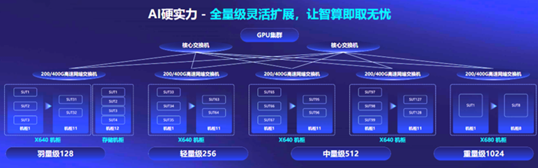 隨著算力成為稀缺資源,寧暢從客戶角度出發(fā),提供了“先享后付”的算力購買方案。目前,寧暢AI算力棧已開放免費試用,現(xiàn)已有50+用戶預(yù)約試用。該算力棧是一個包括128臺GPU服務(wù)器的千卡級別算力集群,標(biāo)準(zhǔn)化智算中心建設(shè)方案囊括了羽量級128、輕量級256、中量級512、重量級1024四個等級,實現(xiàn)全量級靈活擴展,給了用戶極大選擇空間。用戶可在試用中嘗試不同的業(yè)務(wù)組合、方案框架,以便找到“最優(yōu)性價比”的智算中心建設(shè)方案。