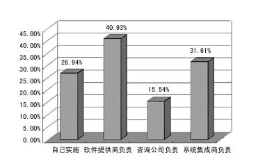 在用戶如何實施CRM系統(tǒng)的調(diào)查中,已應(yīng)用CRM的單位一般都是由自己或軟件提供商負責(zé),而沒用CRM的企業(yè)則大多期望能由軟件提供商負責(zé)。這說明,用戶實施CRM的主體意識還不夠強。