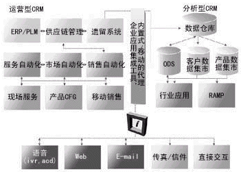 CRM是一種以客戶為中心的業(yè)務(wù)模式,是由多種技術(shù)手段支持的、通過(guò)以客戶為中心達(dá)到增強(qiáng)企業(yè)競(jìng)爭(zhēng)力的商業(yè)策略,這一點(diǎn)已在市場(chǎng)上取得了共識(shí)。這種認(rèn)識(shí)對(duì)許多企業(yè)來(lái)說(shuō),或許仍覺(jué)得有些抽象。CRM要達(dá)到的目標(biāo),就是在適當(dāng)?shù)臅r(shí)間通過(guò)適當(dāng)?shù)那澜o適當(dāng)?shù)目蛻籼峁┻m當(dāng)?shù)漠a(chǎn)品和服務(wù),這不是憑一種技術(shù)手段就能夠?qū)崿F(xiàn)的。美國(guó)調(diào)研機(jī)構(gòu)Meta Group把CRM分為三類(如圖1所示):一是與企業(yè)業(yè)務(wù)運(yùn)營(yíng)緊密相關(guān)的運(yùn)營(yíng)型CRM。運(yùn)營(yíng)型CRM即所謂的前端辦公室應(yīng)用,包括銷售自動(dòng)化、市場(chǎng)自動(dòng)化、服務(wù)自動(dòng)化等應(yīng)用,以及前端辦公室和后端辦公室的無(wú)縫集成。二是以數(shù)據(jù)倉(cāng)庫(kù)為基礎(chǔ)、實(shí)現(xiàn)統(tǒng)一客戶視角的分析型CRM。分析型CRM與數(shù)據(jù)倉(cāng)庫(kù)密切相關(guān),運(yùn)用數(shù)據(jù)挖掘、OLAP、交互查詢和報(bào)表等手段,了解客戶的終身價(jià)值、信用風(fēng)險(xiǎn)和購(gòu)買(mǎi)趨向等。三是基于多媒體聯(lián)系中心、建立在統(tǒng)一接入平臺(tái)上的協(xié)作型CRM。協(xié)作型CRM是為客戶交互服務(wù)和收集客戶信息提供的各種渠道及聯(lián)系的手段。