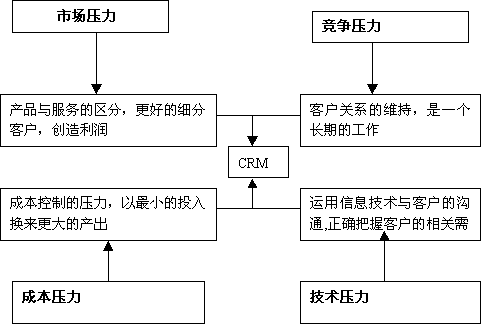 產(chǎn)品與服務(wù)的區(qū)分,更好的細(xì)分客戶,創(chuàng)造利潤客戶關(guān)系的維持,是一個長期的工作成本控制的壓力,以最小的投入換來更大的產(chǎn)出運(yùn)用信息技術(shù)與客戶的溝通,正確把握客戶的相關(guān)需求 市場壓力競爭壓力成本壓力技術(shù)壓力