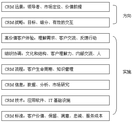 對于大多數(shù)公司而言,一個產(chǎn)品戰(zhàn)略很好理解。但是CRM戰(zhàn)略卻不太讓人理解。這是因為在CRM產(chǎn)業(yè)界、學(xué)術(shù)界對"CRM是什么"、"CRM戰(zhàn)略由什么組成"還沒有達成共識。因此,以下所闡述的CRM戰(zhàn)略并不一定勝人一籌,但我們會努力全面論述CRM戰(zhàn)略框架。我們認為一個CRM戰(zhàn)略必須包括以下幾個內(nèi)容:定義價值前提、定義客戶戰(zhàn)略、企業(yè)變革計劃。