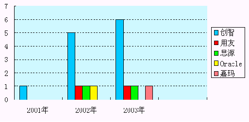 圖3:從2001年至2003年10月底管理軟件廠商獲得訂單的總量統(tǒng)計(jì)。