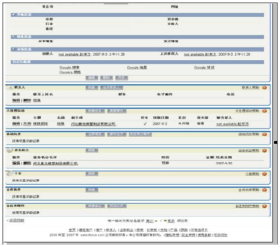 這種模式較之Salesforce界面切換式的操作,給人的感覺就像是液晶電視和CRT電視的感覺,差著技術(shù)時(shí)代!在Salesforce正式面向中國市場(chǎng)以前,筆者了解過Salesforce的英文版本,Ajax的應(yīng)用也是比較多的,但是為何其中文版本的人機(jī)交互卻使用了兩三千年的老技術(shù)?這個(gè)問題也許只有Salesforce才可以回答。不過顯然,在這個(gè)項(xiàng)目的對(duì)決中,XToolsCRM大勝Salesforce。