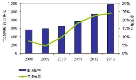中國(guó)CRM解決方案市場(chǎng)規(guī)模(2008-2013年)